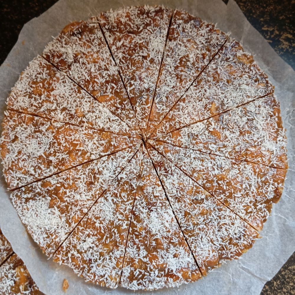 Dit is een rijk gevulde dadeltaart met walnoten en biscuits.